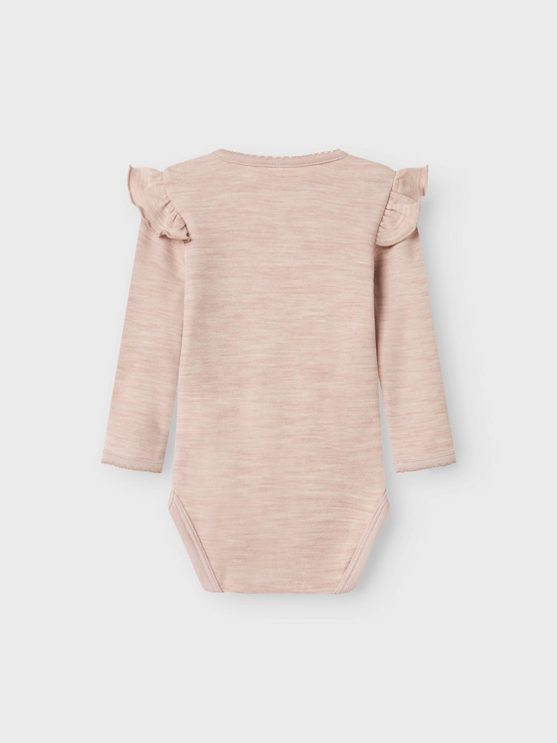 Myk og god body fra Name It i ull/bambusviskose. Bodyen har rysjer på erm.